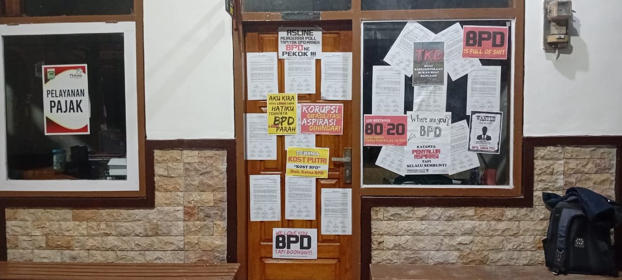 Karena merasa diabaikan, warga melayangkan surat terbuka kepada BPD sebagai bentuk aspirasi. Namun, lagi-lagi tidak ada respons. Kekecewaan warga memuncak. Mereka kemudian menempelkan surat terbuka dan berbagai poster berisi sindiran di pintu, kaca, dan tembok kantor BPD sebagai bentuk protes terbuka terhadap sikap diam pihak desa.