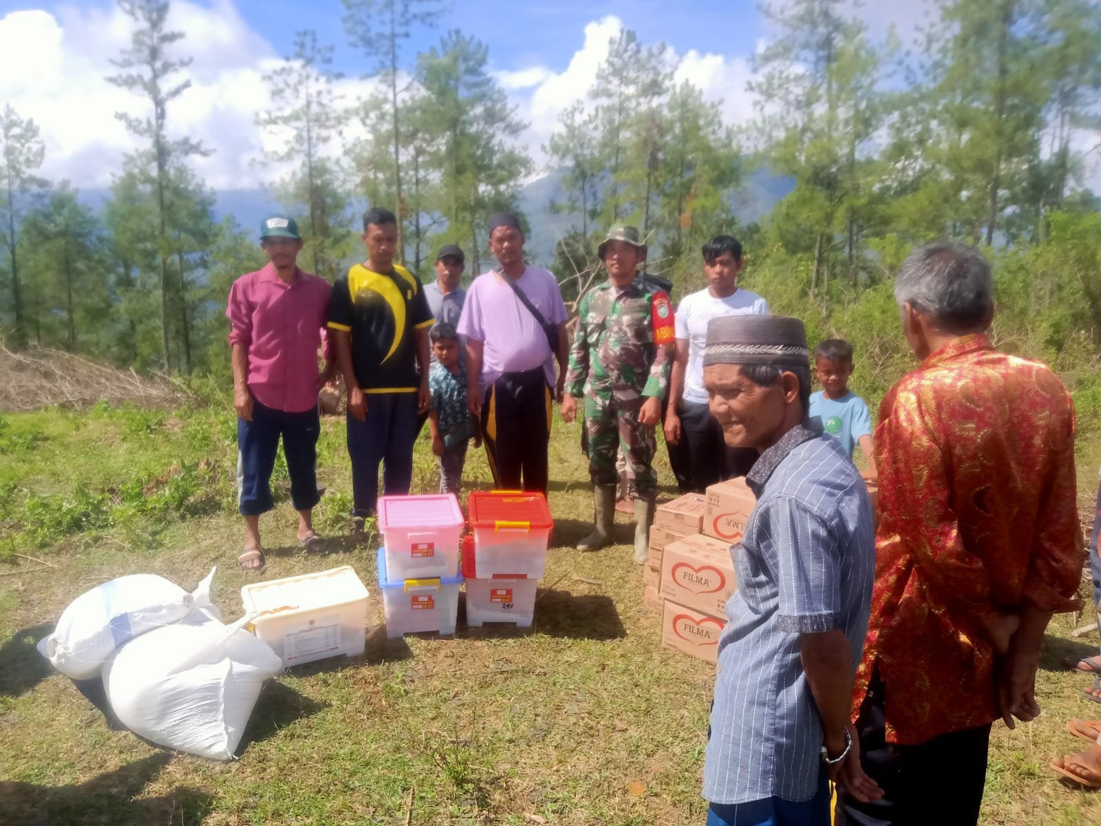 Babinsa Koramil 05/Linge Kodim 0106 Aceh Tengah, Serka Daut, yang melakukan pengamanan sekaligus pendampingan kegiatan, memastikan seluruh rangkaian penyaluran bantuan berjalan dengan aman dan tertib.