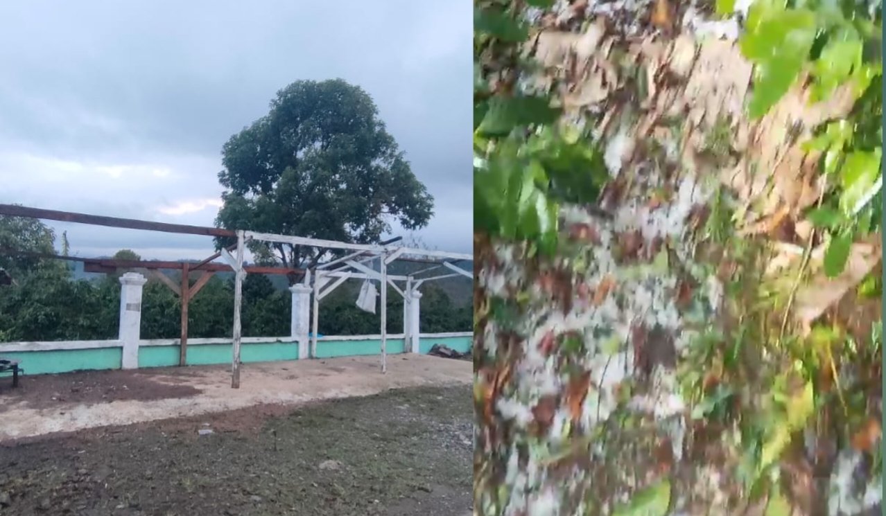 Selain itu, angin kencang yang menyertai hujan es juga merusak sejumlah Fasilitas umum, termasuk tempat ibadah, turut terdampak dalam kejadian tersebut.