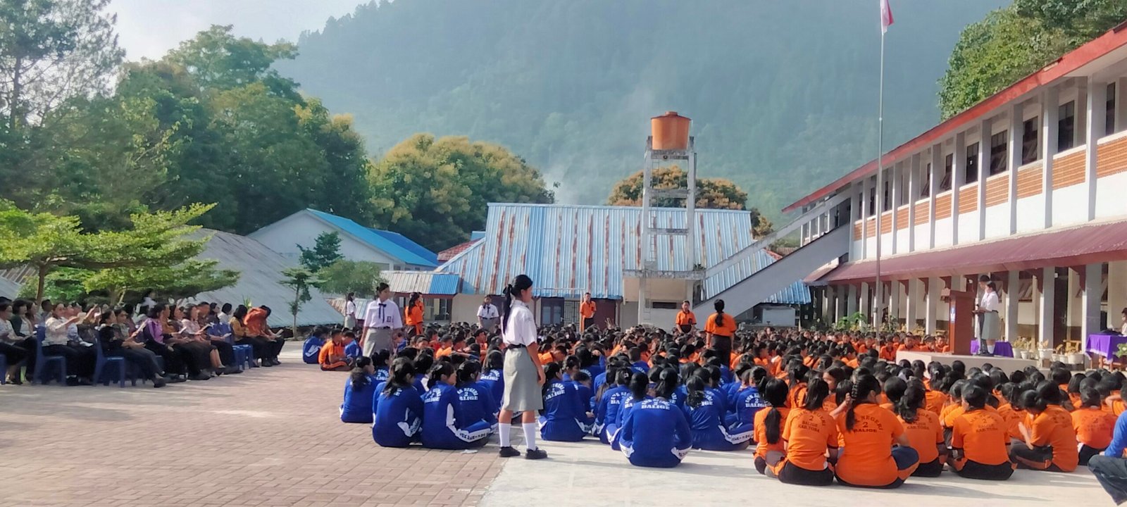 Sebelum ibadah dimulai, para siswa terlebih dahulu bergotong royong membersihkan lingkungan sekitar lapangan sekolah. Kegiatan tersebut dilakukan sebagai bentuk kepedulian terhadap kebersihan serta menumbuhkan rasa tanggung jawab bersama di lingkungan sekolah.
