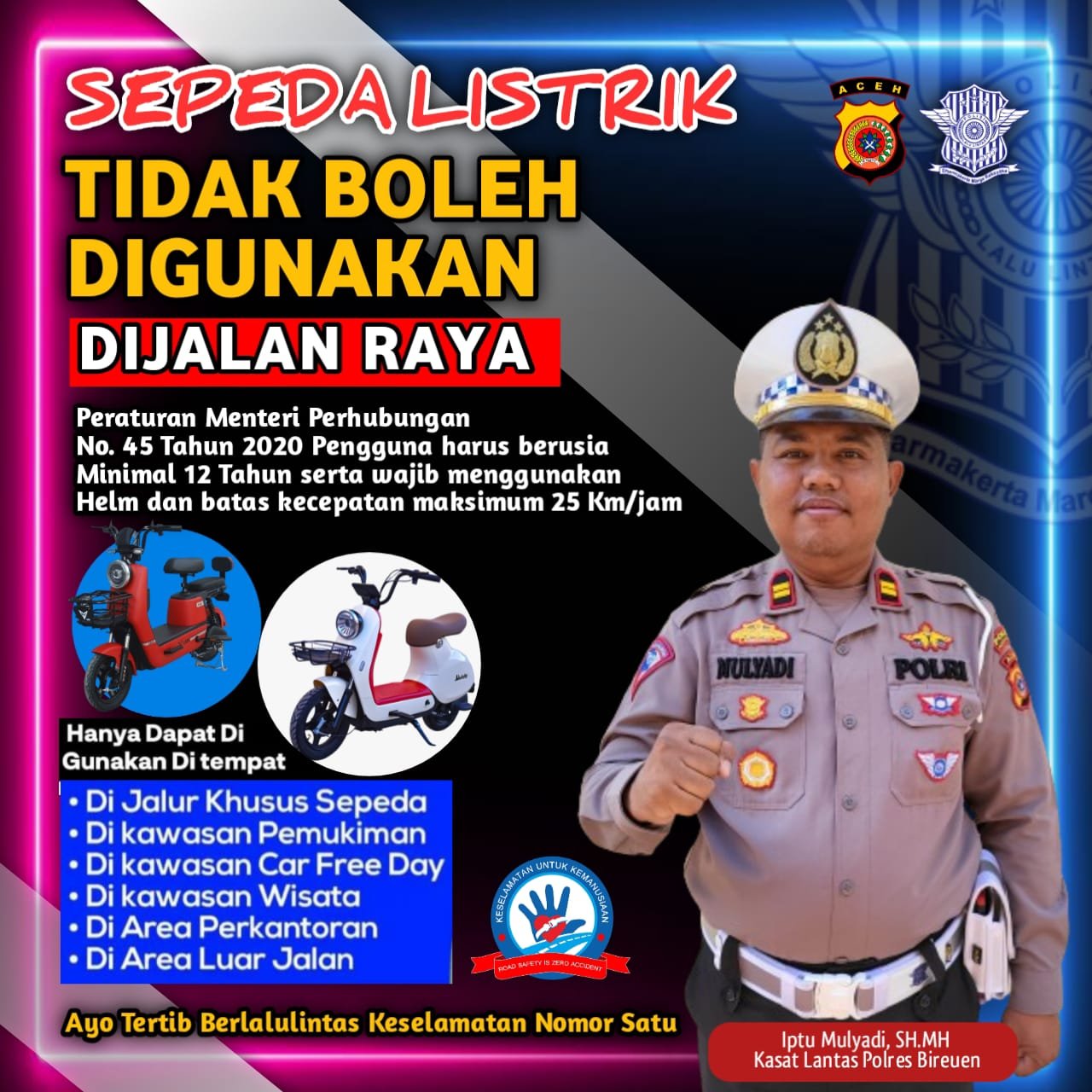 Menurut Kasat lantas Polres Bireuen, IPTU Mulyadi,SH.MH Himbauan terkait sepeda listrik.