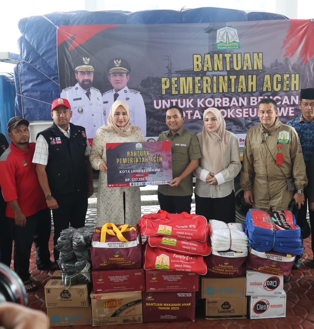 Istri Gubernur Aceh yang juga Ketua TP PKK Aceh, Ny. Marlina Muzakir, turun langsung meninjau kondisi warga sekaligus menyalurkan bantuan logistik. Dalam kunjungan tersebut, beliau didampingi Plt. Kepala Dinas Sosial Aceh, Chaidir, S.E., M.M. Penyerahan bantuan berlangsung di Halaman Pendopo Wali Kota Lhokseumawe.