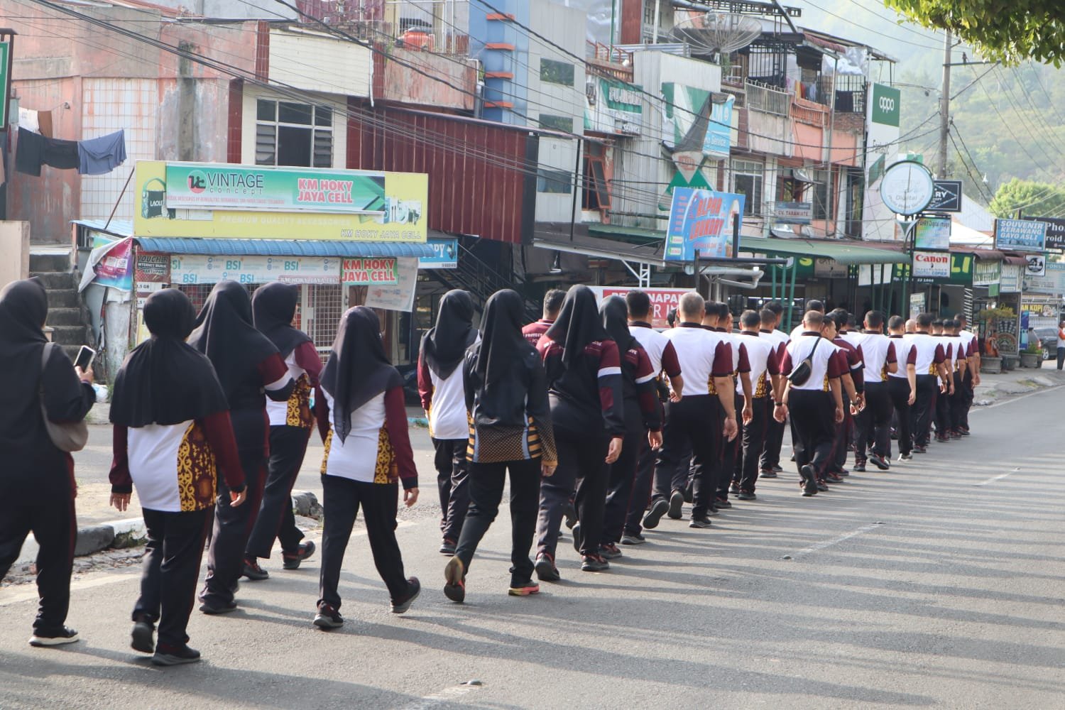 Kegiatan olahraga pagi ini bersama seluruh anggota Polres Aceh Tengah, dengan berjalan kaki ke luar Mapolres berkeliling kota Takengon dan kembali lagi ke Mapolres.