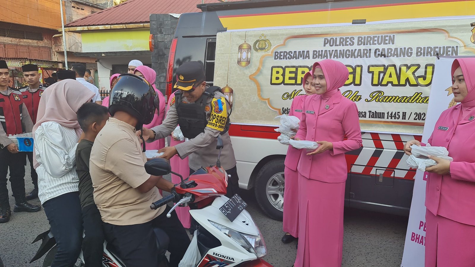 Jelang Berbuka Puasa, Polres Bireuen Berbagi Takjil Gratis Untuk Pengendara