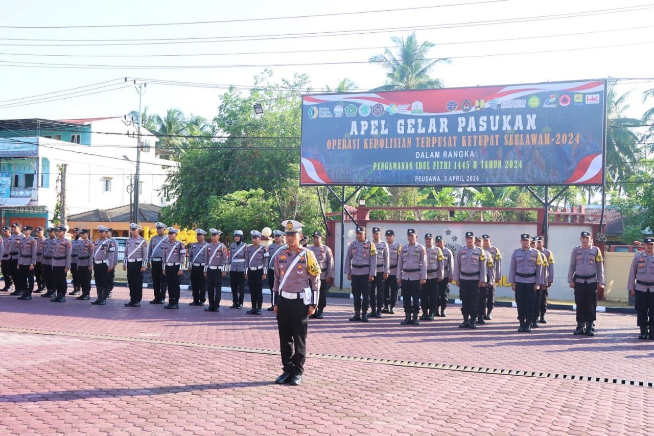 Polres Aceh Timur Polda Aceh laksanakan Apel Gelar Pasukan Operasi Ketupat Seulawah Tahun 2024 dalam rangka pengamanan Hari Raya Idul Fitri 1445 Hijriyah.