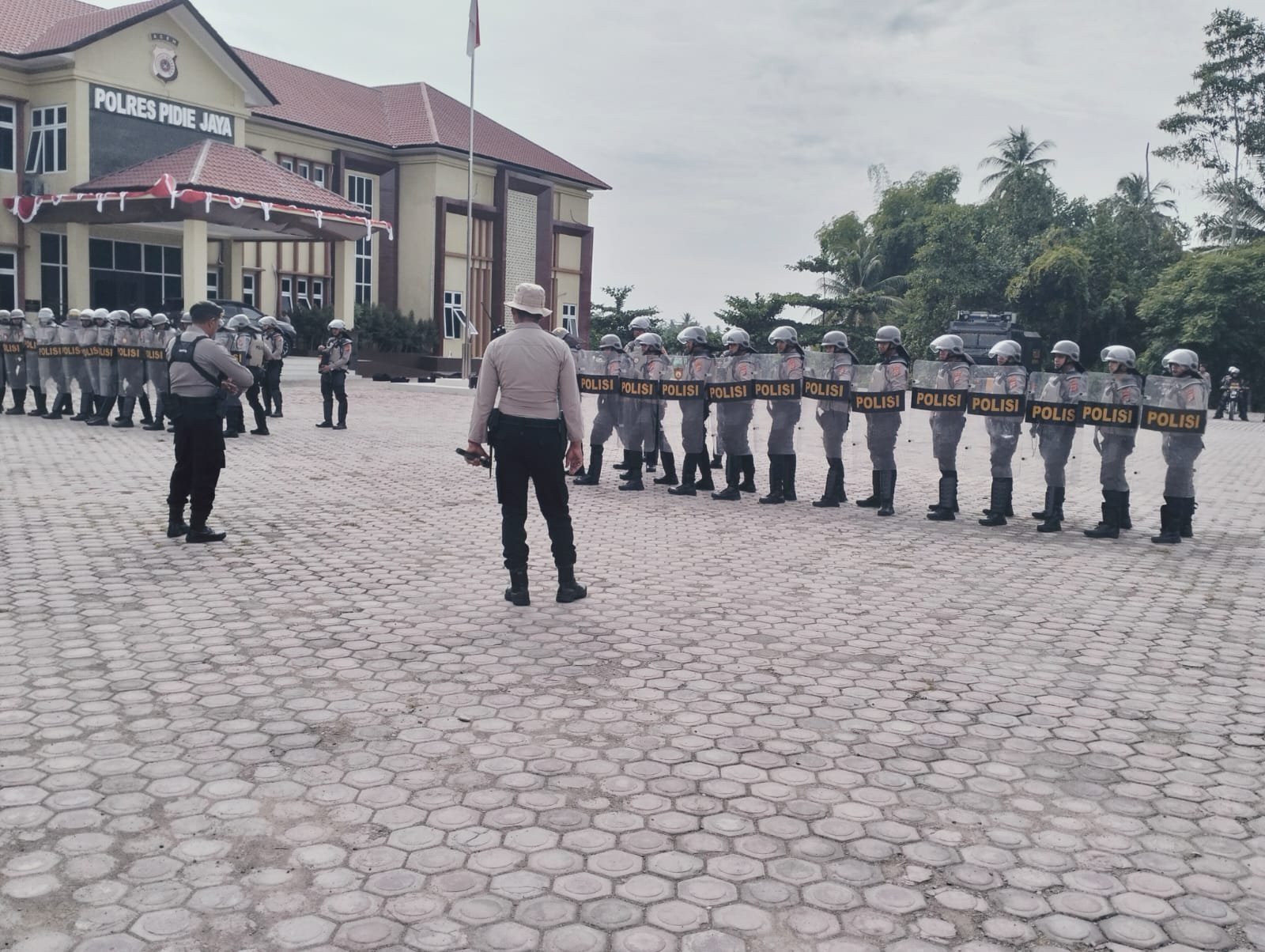 Polres Pidie Jaya menyiapkan sejumlah personel yang nantinya bakal diterjunkan di lapangan pada pelaksanaan penghitungan surat suara ulang ( pssu) guna mendukung aspek pengamanan jalannya kegiatan tersebut.