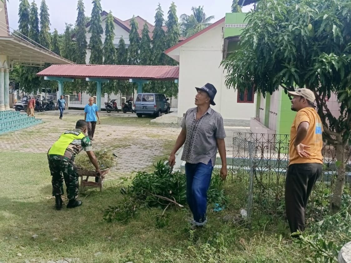 Dalam kegiatan ini, Babinsa bersama masyarakat membersihkan area sekitar Meunasah, termasuk memotong rumput, membersihkan selokan, tempat wudhu, serta bagian dalam meunasah.