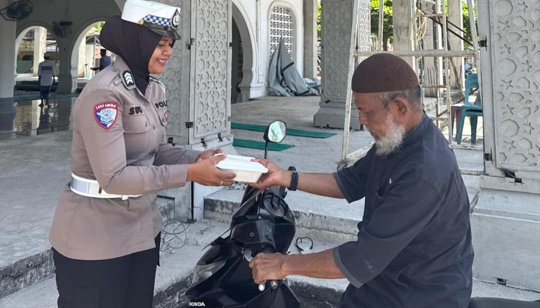 PIDIE JAYA – Sebagai bentuk kepedulian dan upaya mempererat hubungan dengan masyarakat, Polwan Polres Pidie Jaya kembali melaksanakan kegiatan sosial bertajuk Jum’at Berkah dengan membagikan 30 kotak nasi kepada warga di sekitar Masjid Al-Ikhlas, Gampong Pangwa, Kecamatan Meureudu, Jumat (18/7/2025) pukul 12.00 WIB.