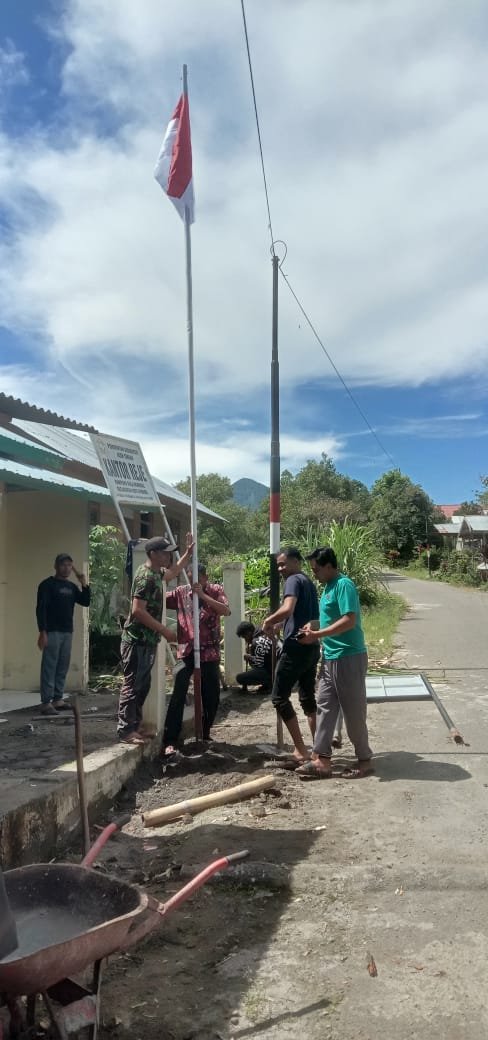Kegiatan yang berlangsung sejak pagi hari ini melibatkan berbagai unsur masyarakat, mulai dari perangkat desa, pemuda, hingga warga lansia. Mereka terlihat kompak membersihkan rumput, menyapu halaman, memperbaiki saluran air, dan menata ulang fasilitas umum di sekitar kantor desa. Salah satu fokus utama kegiatan kali ini adalah pemasangan kembali tiang bendera yang telah diperbarui, sebagai simbol semangat kebangsaan yang terus dikobarkan.