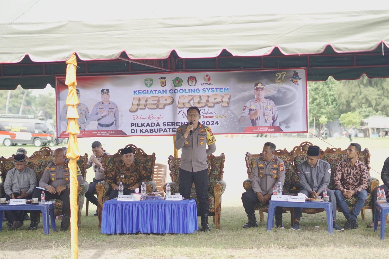 Sigli – Kapolres Pidie AKBP Jaka Mulyana, SIK, MIK,. mengajak segenap lapisan masyarakat kecamatan Kembang Tanjung untuk menciptakan situasi kamtibmas yang kondusif selama masa kampanye dan tahapan Pilkada serentak 2024 di Kabupaten Pidie