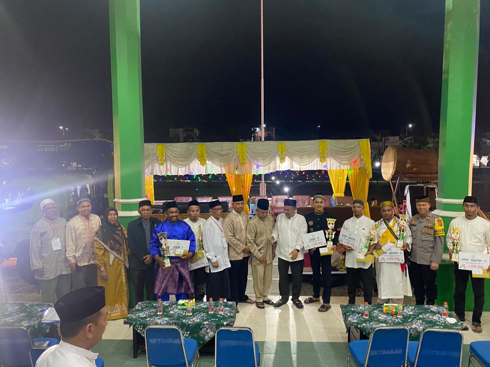 Penyerahan piala dan hadiah diserahkan langsung oleh Pj. Bupati Aceh Tamiang, Drs. Asra, didepan kontingen yang ikut serta dalam memeriahkan festival takbir Akbar keliling.
