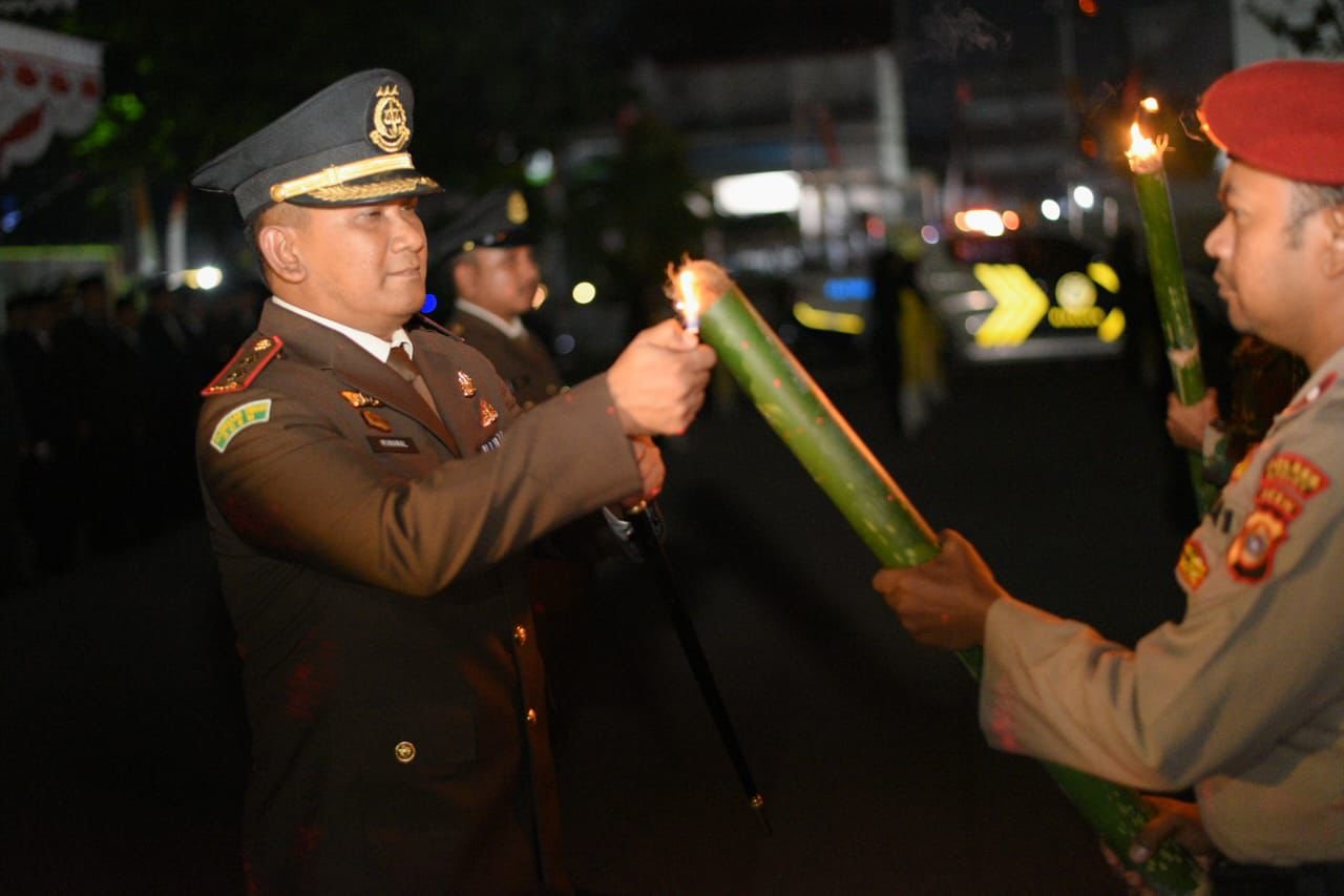 Kajari Bireuen secara langsung menyalakan obor Taptu yang dibawakan bagi masing-masing peserta upacara selanjutnya obor dinyalakan secara bersama-sama oleh peserta yang terdiri dari TNI, Polri, ASN dan pelajar.