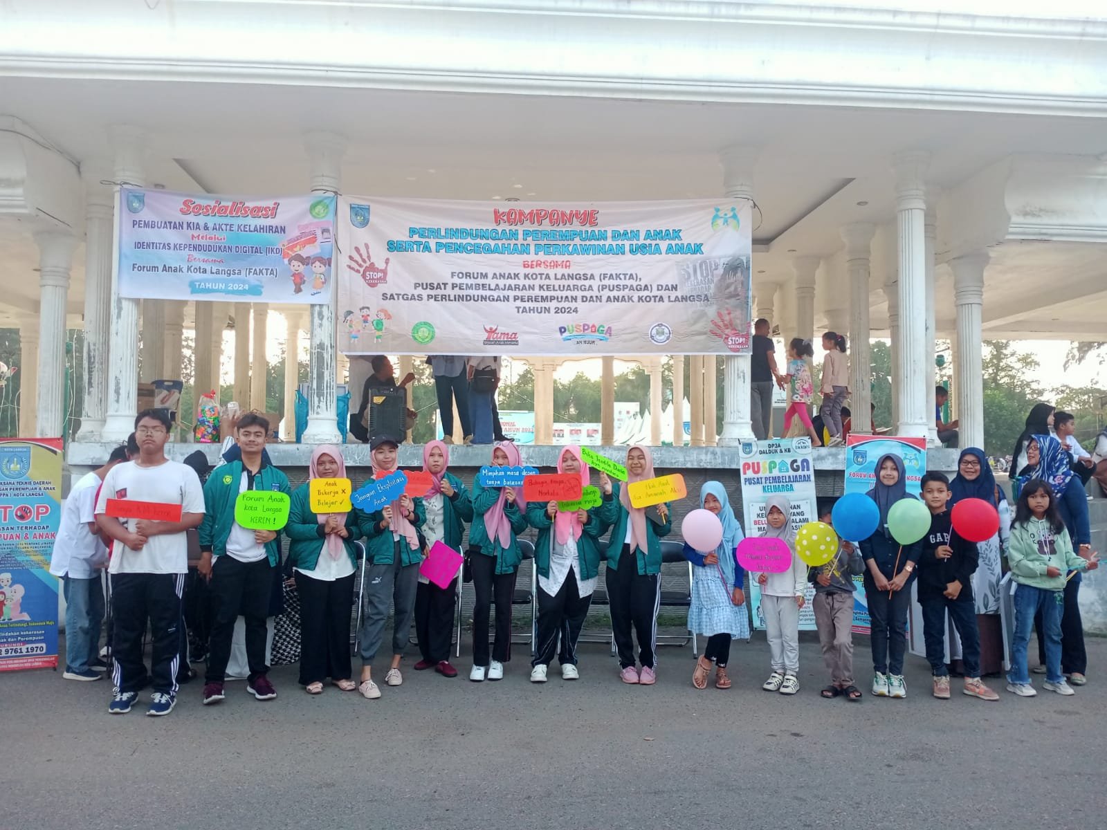 Kota Langsa | sarupena.co.id — Pemerintah Kota (Pemko) Langsa melalui Dinas DP3A Dalduk dan KB Kota Langsa bersama Forum Anak Kota Langsa (FAKTA), Pusat Pembelajaran Keluarga (PUSPAGA) Dan Satgas P3A gelar Kampanye Pencegahan Perkawinan Usia Dini di Lapangan Merdeka Kota Langsa, Minggu (04/02/2024).