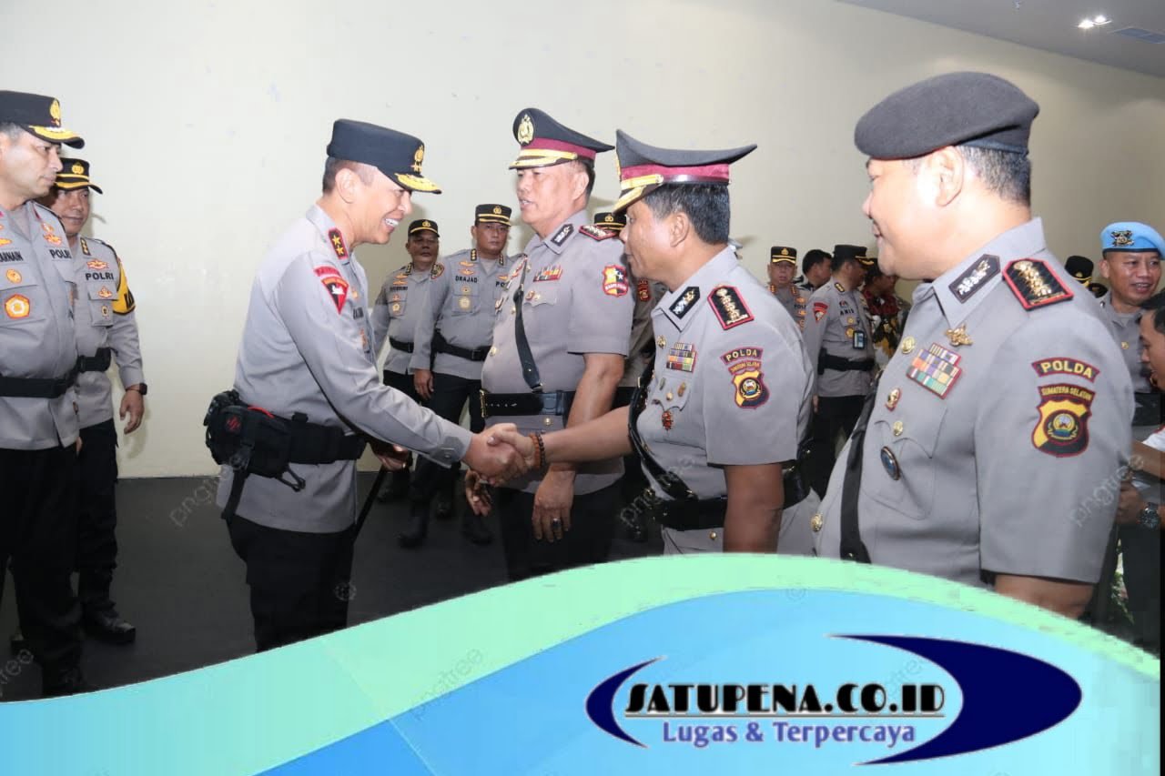 Kapolda Sumsel Irjen A Rachmad Wibowo memimpin prosesi serah terima jabatan dilingkungan Polda dan beberapa Kapolres jajaran, diaula lantai 7 Mapolda pada Jumat (12/7/2024).