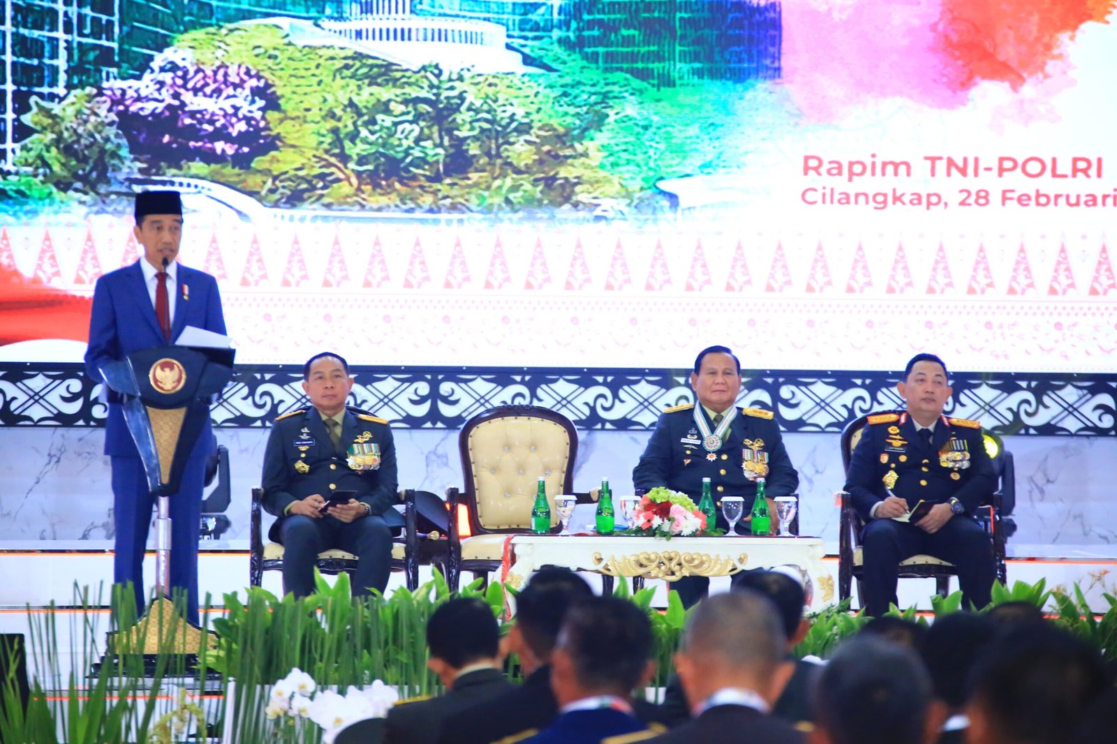 Kapolda Sumsel Irjen Pol. A. Rachmad Wibowo, SIK menghadiri Rapat Pimpinan (Rapim) di Mabes TNI, Cilangkap, Jakarta Timur. Kapolri Jenderal Polisi Drs Listyo Sigit Prabowo, MSi menyampaikan terima kasih kepada Presiden Joko Widodo (Jokowi) yang telah berkenan memberikan arahan dalam Rapim TNI-Polri 2024, yang bertema