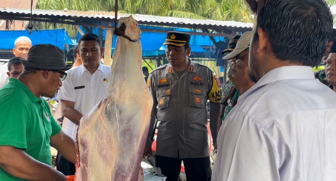 satupena.co.id:Kapolres Aceh Singkil dan Forkopimda bersama-sama turun ke pasar Sianjo-anjo, kecamatan Gunung Meriah, untuk memeriksa ketersediaan dan stabilitas harga bahan pokok menjelang Bulan Suci Ramadhan 1445 Hijriah pada Rabu, 6 Maret 2024.