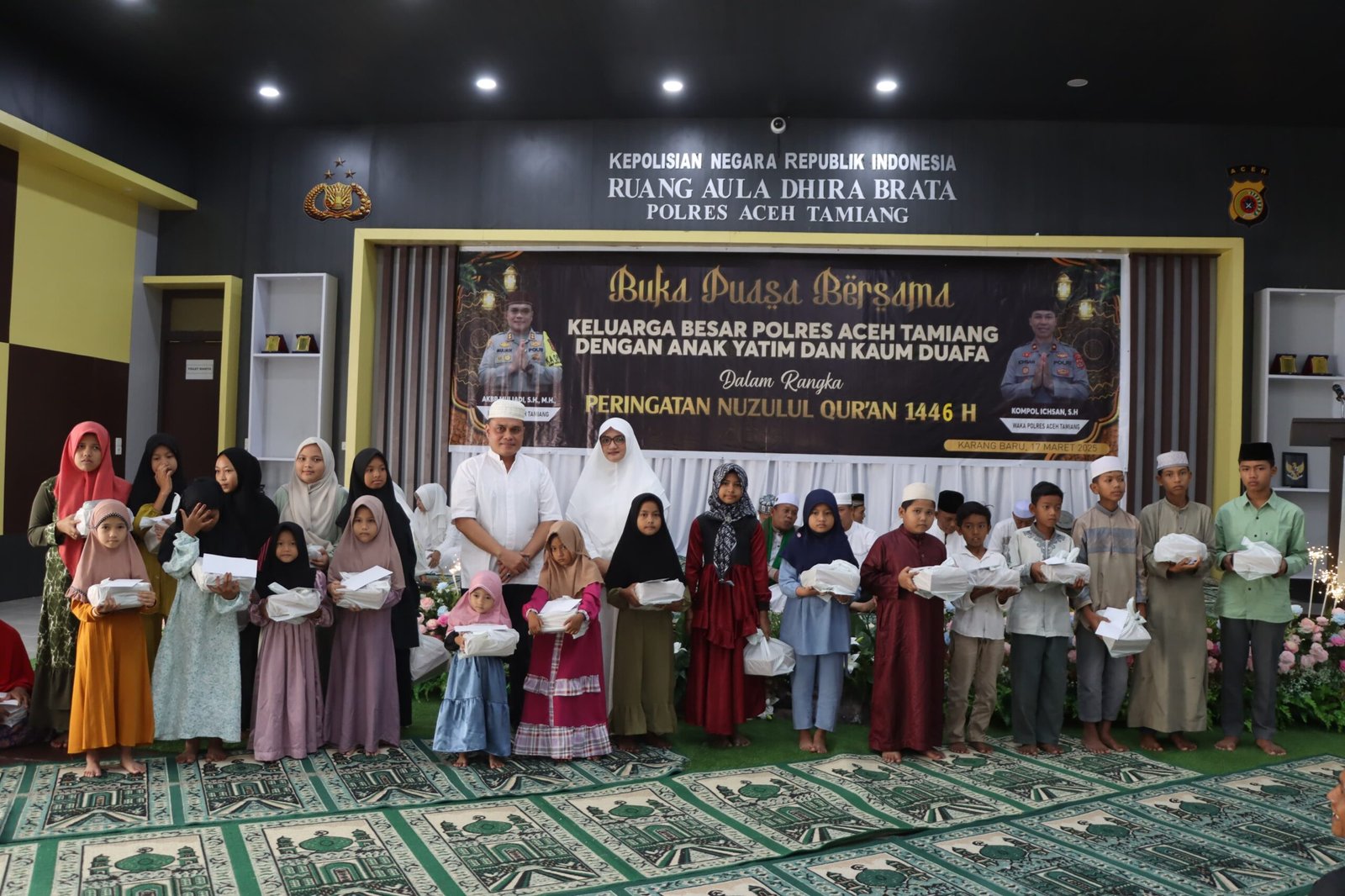 Kapolres Aceh Tamiang, AKBP Muliadi menyampaikan bahwa, buka puasa bersama dengan anak yatim dan kaum dhuafa ini merupakan wujud nyata kepedulian Polri, khususnya Polres Aceh Tamiang terhadap masyarakat, khususnya mereka yang membutuhkan.