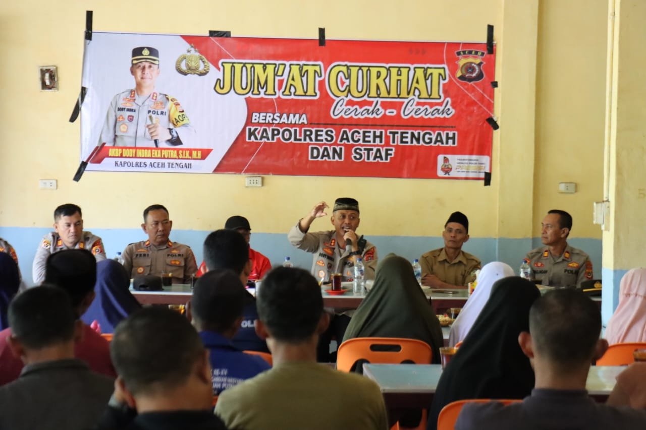 Kapolres Aceh Tengah, AKBP Dody Indra Eka Putra, kembali menunjukkan komitmennya dalam membangun kedekatan dengan masyarakat melalui program Jumat Curhat yang digelar pada Jumat (9/5/25), bersama sejumlah masyarakat Kampung Wakil Jalil Kecamatan Bintang.