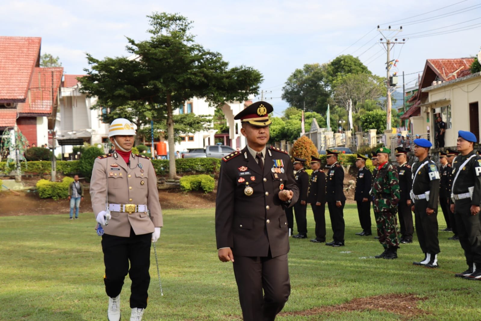 Dalam Upacara tersebut yang bertindak sebagai Inspektur Upacara Kapolres Aceh Tengah Akbp Dody Indra Eka Putra,S.I.K,M.H., kemudian bertindak sebagai Perwira upacara Kabag Sdm Akp Ahmad Yani,S.E, dan sebagai Komandan upacara Ipda Rahmat Akbar,S.H.