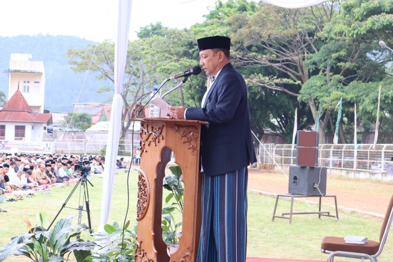 Kapolres Aceh Tengah Akbp Dody Indra Eka Putra, melaksanakan sholat ied pada hari raya Idul Fitri 1445 H Kabupaten setempat.