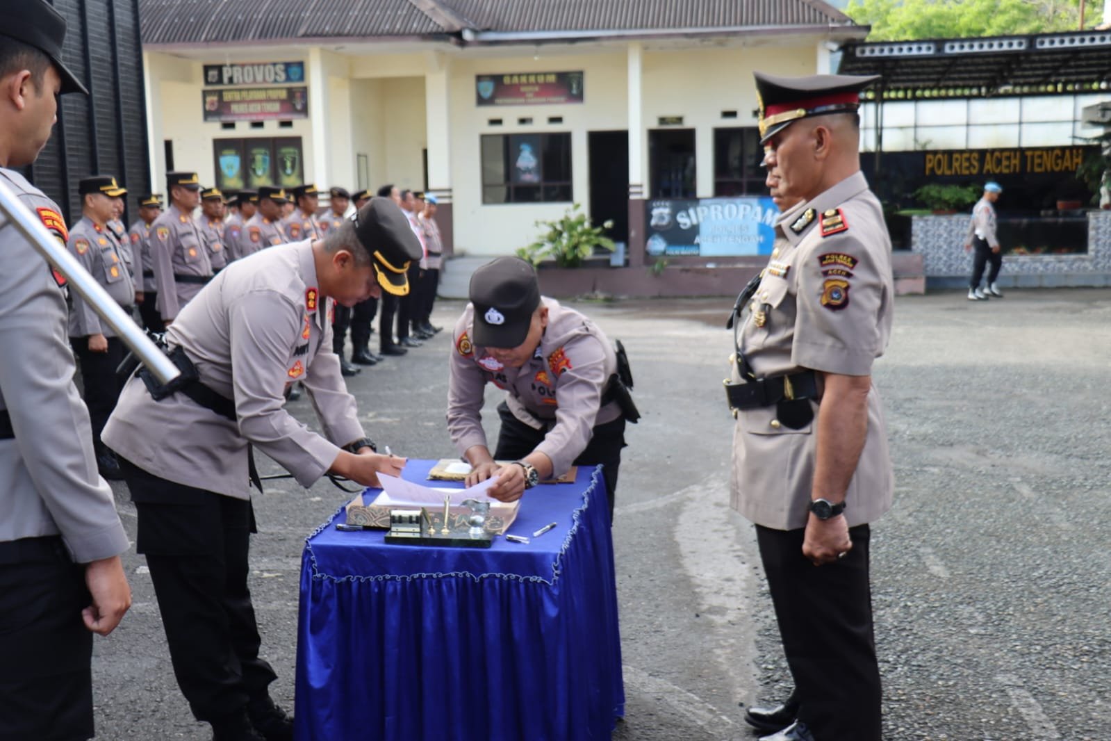 Upacara sertijab ini dihadiri oleh Wakapolres Aceh Tengah, para Kabag, Kasat, Kapolsek jajaran, perwira staf, serta personel Polres Aceh Tengah. Berlangsung dengan khidmat, diawali dengan pembacaan keputusan Kapolda Aceh, pengambilan sumpah jabatan, penandatanganan berita acara serah terima jabatan, serta penandatanganan pakta integritas.