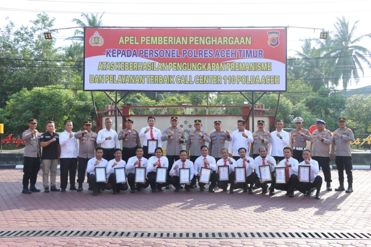 Pemberian penghargaan ini menjadi bentuk nyata apresiasi institusi Polri kepada personel yang telah menunjukkan kinerja luar biasa di berbagai bidang diantaranya, penghargaan kepada personel Satreskrim atas pengungkapan Operasi Premanisme Satgas Gakkum di wilayah Hukum Polres Aceh Timur.