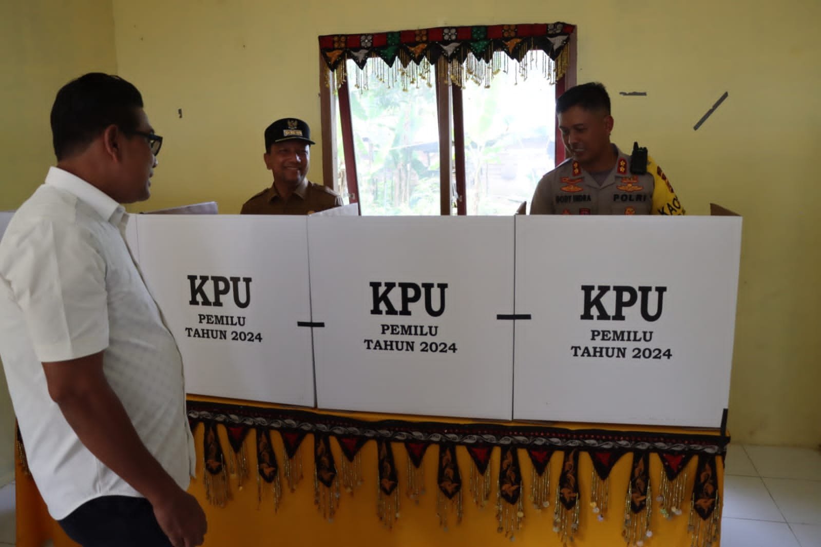 Kapolres Aceh Tengah Polda Aceh AKBP Dody Indra Eka Putra, bersama Pj. Bupati dan unsur Penyelenggara Pemilu Kabupaten Aceh Tengah serta Forkopimcam meninjau Tempat Pemungutan Suara (TPS) di 5 Kampung Kecamatan Linge, Selasa (13/2/2024).