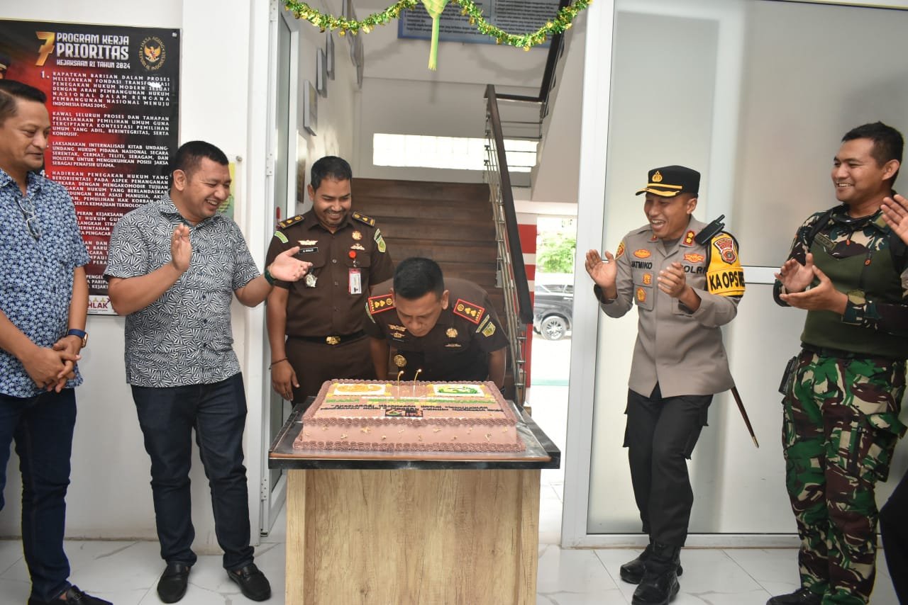Kedatangan Kapolres Bireuen dan rombongan untuk memberikan kejutan dengan membawa Kue ulang tahun di moment peringatan Hari Bhakti Adhyaksa ke 64