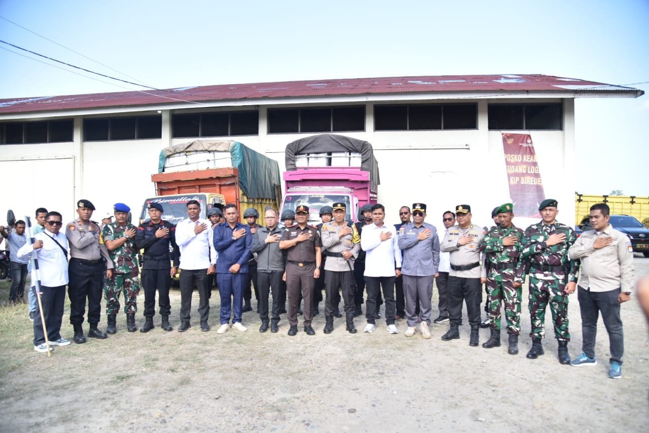 Kapolres Bireuen Bersama Pamatwil Dan Forkopimda Lepas Pendistribusian Logistik Pemilu 2024