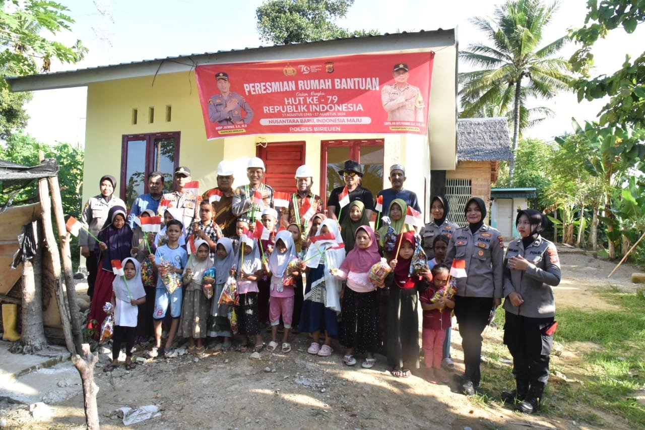 Program Bantuan Rumah dari Kapolres Bireuen tersebut dalam rangka peringatan Hut Ke 79 RI ” Nusantara Baru Indonesia Maju”