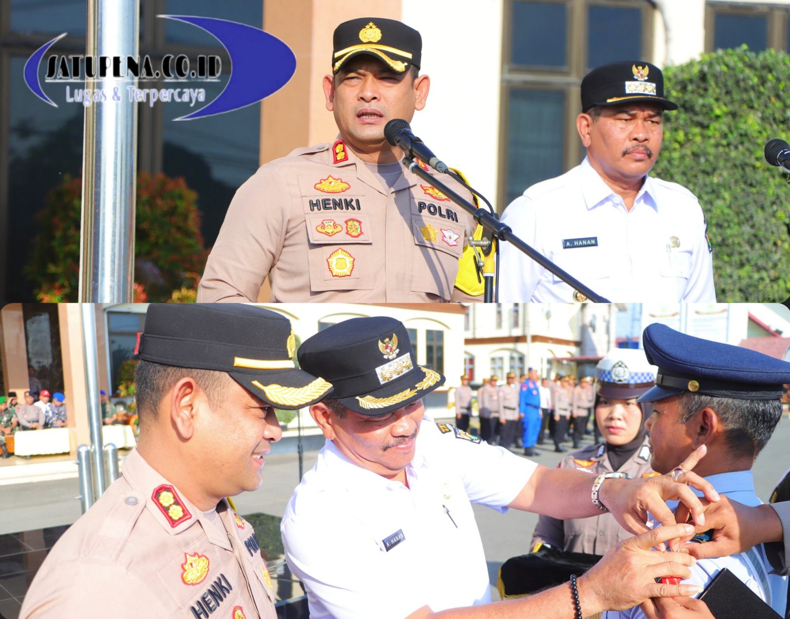Kapolres Lhokseumawe, AKBP Henki Ismanto, S.I.K, bersama dengan PJ Walikota, A. Hanan, SP. MM., memimpin apel gelar pasukan operasi Ketupat Seulawah 2024 di halaman Mapolres Lhokseumawe, Rabu (03/04/2024)