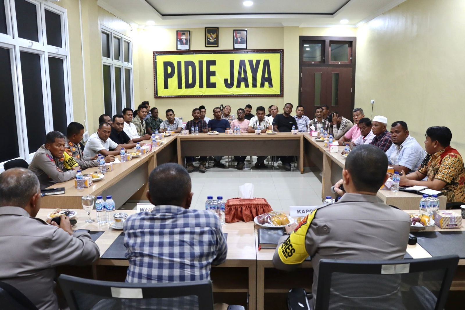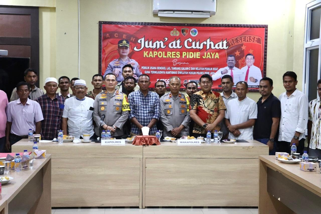 Dalam pertemuan tersebut, Kapolres mempertemukan sejumlah tokoh penting dari masyarakat, seperti Panglima Laot, pengusaha tambang galian C, pengusaha bengkel las, serta para nelayan setempat.