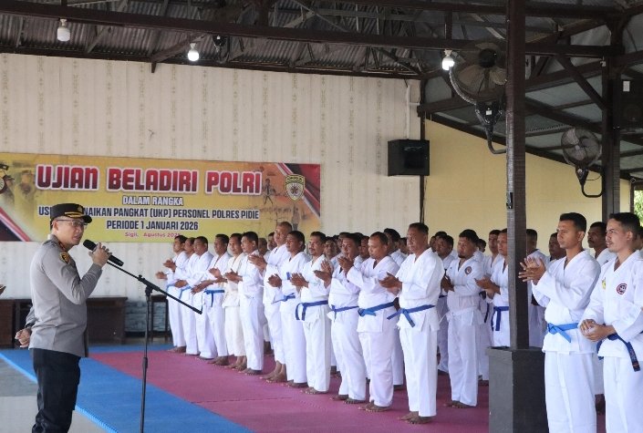 Ujian beladiri ini diikuti oleh personel dari berbagai satuan kerja di Polres Pidie. Selain untuk memenuhi persyaratan administrasi kenaikan pangkat, kegiatan ini juga bertujuan untuk mengasah kemampuan fisik dan keterampilan taktis anggota agar selalu siap menghadapi berbagai tantangan tugas kepolisian.(“*)