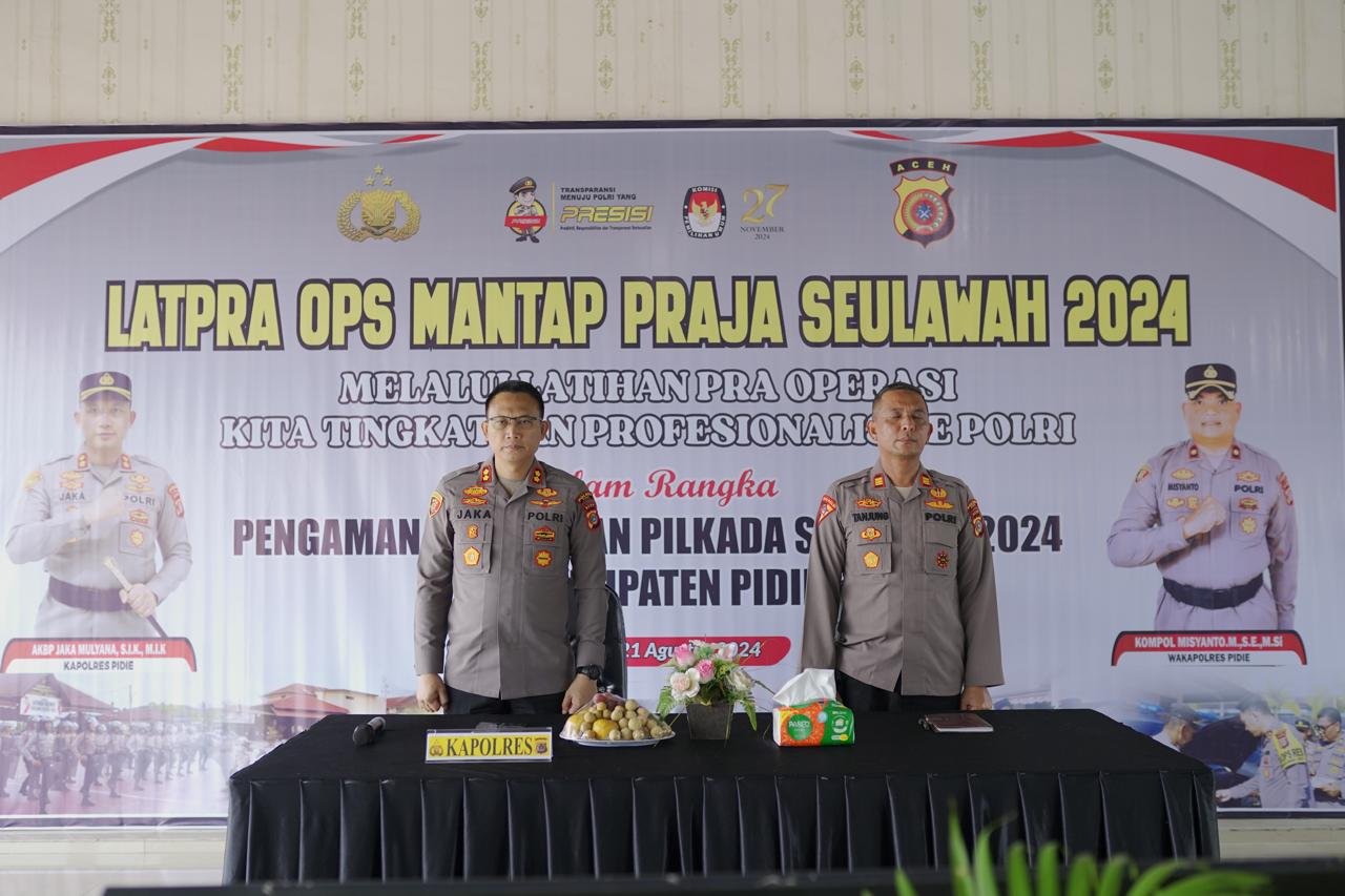 Latpra Ops Mantap Praja Seulawah 2024, ini bertujuan untuk meningkatkan pengetahuan dan kemampuan personel Polri dalam menjaga keamanan dan kelancaran penyelenggaraan pilkada serentak di Kabupaten Pidie.