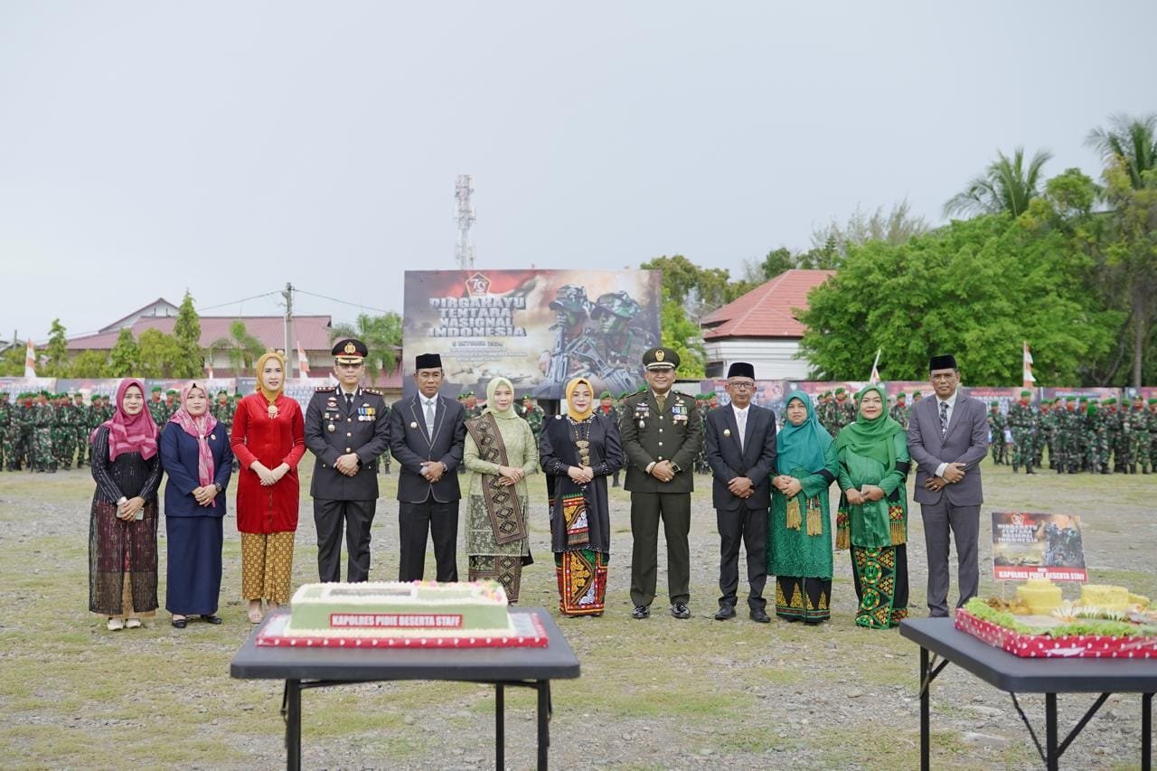 Kapolres Pidie Hadiri Upacara dan Berikan Surprise di HUT Ke -79 TNI