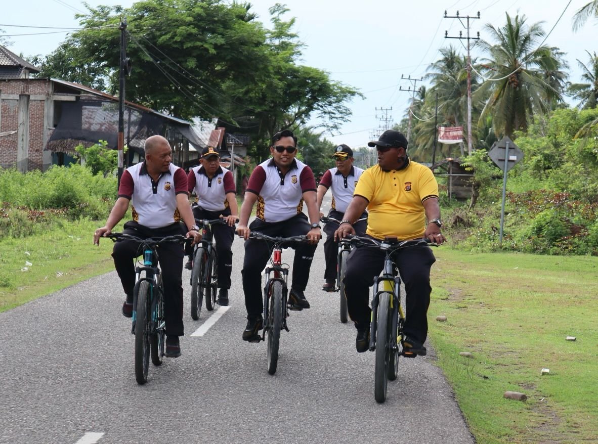 Mengusung konsep sportive and responsive policing, rombongan gowes menempuh rute strategis mulai dari Mako Polres hingga sejumlah titik padat aktivitas masyarakat di Kota Meureudu dan Trienggadeng.