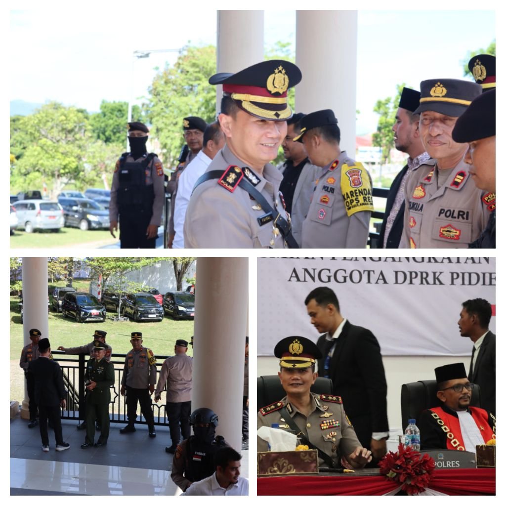 Pidie Jaya,Satupena.co: Untuk memastikan kelancaran pelantikan 25 anggota DPRK Pidie Jaya periode 2024-2029, Kapolres Pidie Jaya, AKBP Ahmad Faisal Pasaribu, S.H., S.I.K., M.H., telah mengerahkan 50 personel pada Senin, 26 Agustus 2024.