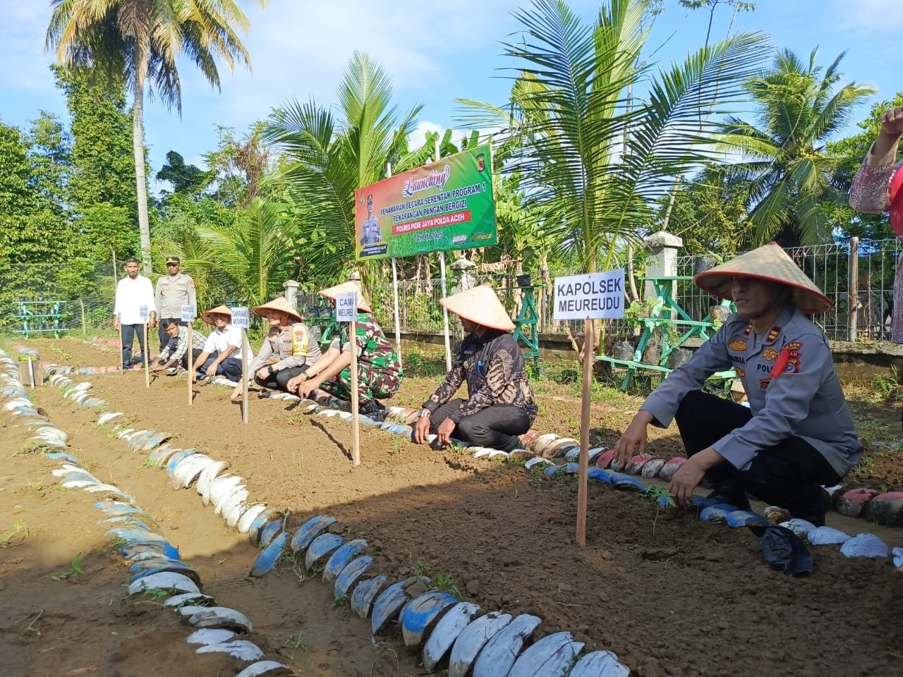 Pidie Jaya – Dalam rangka memperkuat ketahanan pangan dan menciptakan kemandirian pangan lokal, Kapolres Pidie Jaya, AKBP Ahmad Faisal Pasaribu, S.H., S.I.K., M.H., meresmikan program Pekarangan Pangan Bergizi di Gampong Kuta Trieng, Kecamatan Meureudu, Kabupaten Pidie Jaya. Kamis, 2 Januari 2025, pukul 09.00 WIB, di kebun tamanan bergizi seluas 0,25 Ha (2.500 m²), yang melibatkan sinergi antara Polres Pidie Jaya, TNI, Pemerintah Daerah, serta masyarakat setempat.