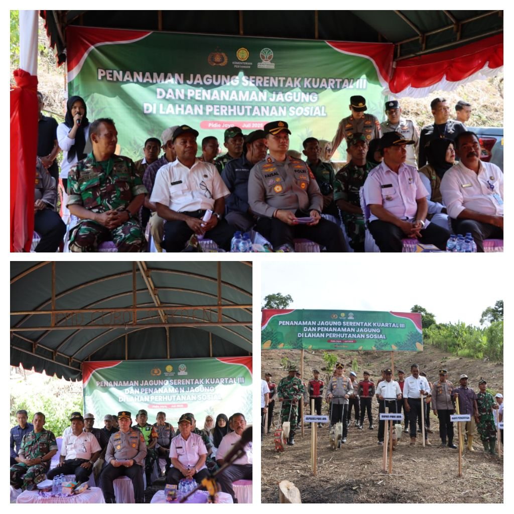 PIDIE JAYA – Dalam rangka memperkuat ketahanan pangan nasional, Kapolres Pidie Jaya AKBP Ahmad Faisal Pasaribu, S.H., S.I.K., M.H. memimpin langsung kegiatan penanaman jagung serentak Kuartal III di atas lahan perhutanan sosial di Gampong Blang Sukon, Kecamatan Bandar Baru, pada Rabu, 9 Juli 2025.