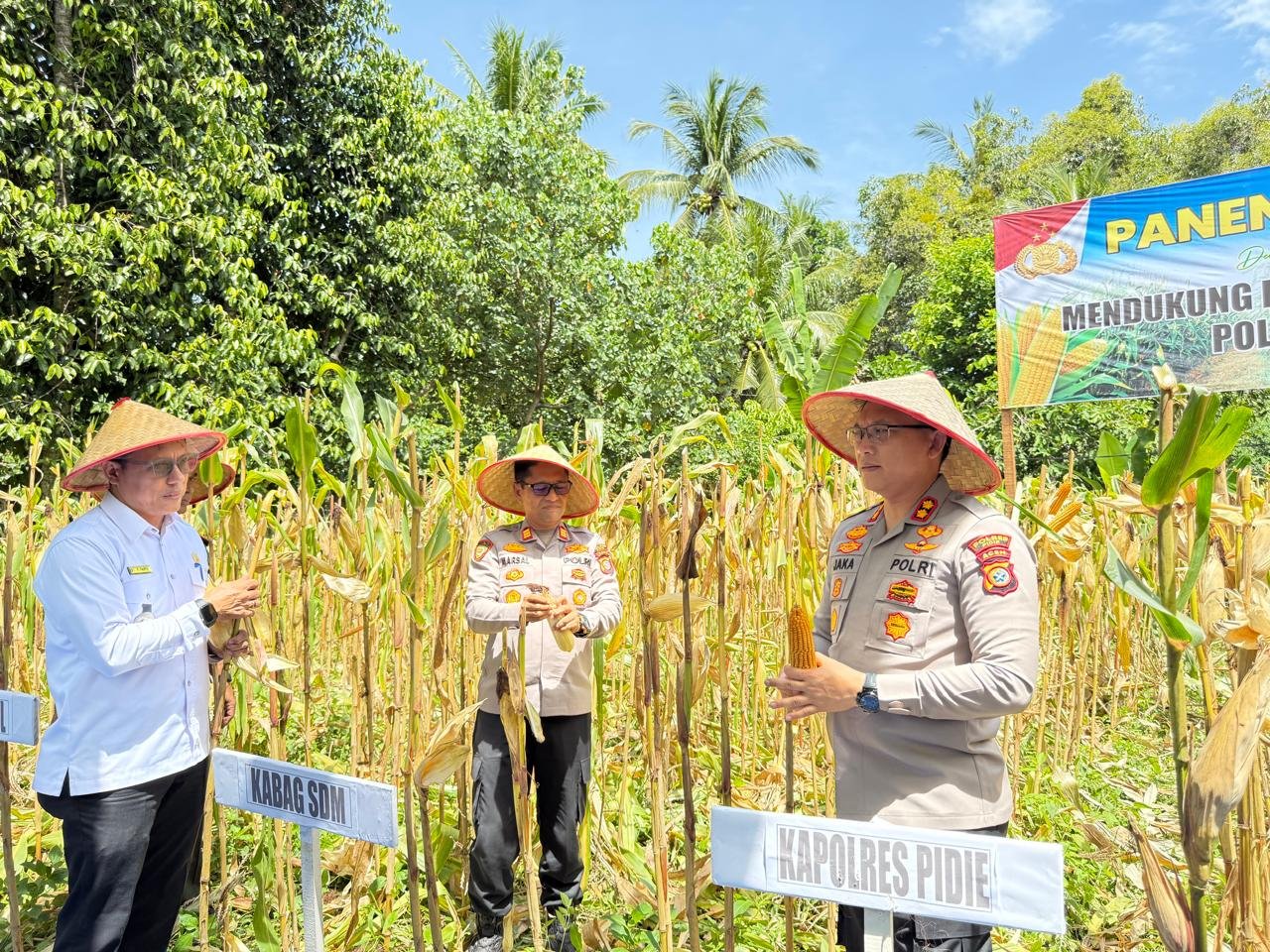 Kapolres Pidie juga menyoroti jagung sebagai salah satu komoditas unggulan yang cocok untuk wilayah Kabupaten Pidie. Menurutnya, jagung merupakan salah satu sumber bahan pangan utama dan komoditas yang sangat potensial di daerah ini.