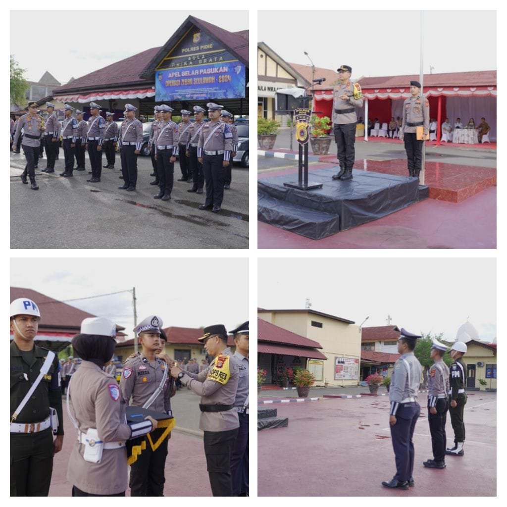 “Apel gelar pasukan yang dilaksanakan pada hari ini bertujuan untuk mengetahui sejauh mana kesiapan personil maupun sarana prasarana dalam rangka mendukung pelasanaan tugas-tugas Operasi di lapangan sehingga Operasi Zebra Seulawah 2024 berjalan dengan Optimal dan dapat berhasil sesuai dengan target serta sasaran yang telah ditetapkan”, ucap Kapolres Pidie