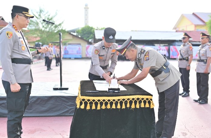 Sigli – Kapolres Pidie AKBP Jaka Mulyana, SIK, MIK, memimpin upacara serah terima jabatan (Sertijab) di jajaran Polres Pidie yang berlangsung di lapangan apel Mapolres Pidie, Selasa (16/9/2025).