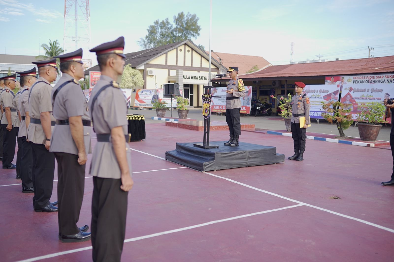 Kapolres Pidie Polda Aceh AKBP Imam Asfali, SIK, MH Pimpin upacara serah terima jabatan Kabaglog, Kasat Samapta, Kasat Reskrim, Kasatlantas, Kapolsek Kota Sigli, Kapolsek Peukan Baro, Kapolsek Sakti, Kapolsek Tangse dan Kapolsek Geumpang Polres Pidie Polda Aceh.