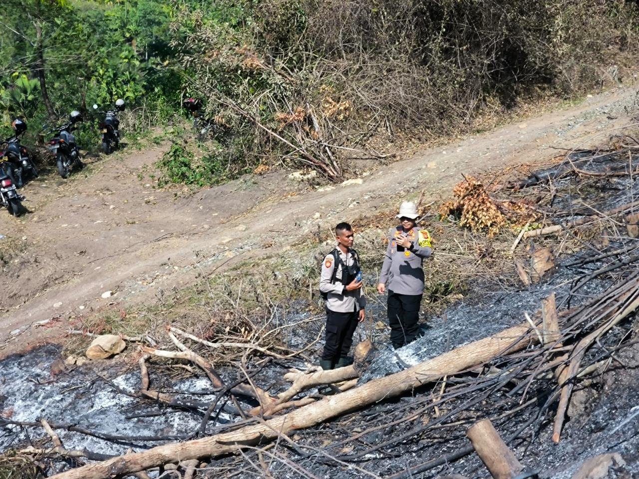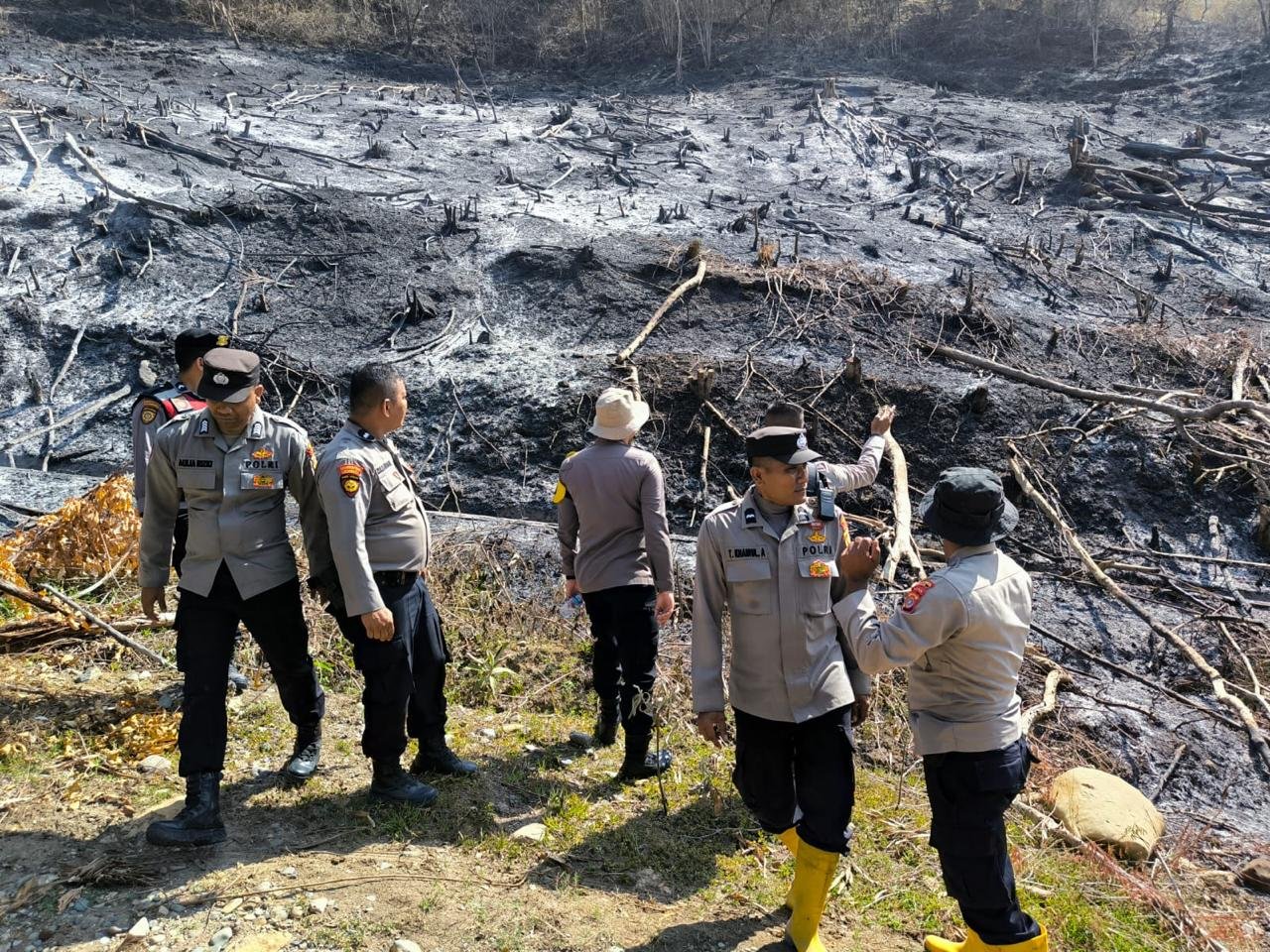 Kapolres Pidie AKBP Jaka Mulyana, SIK, MIK didampingi para pejabat utama Polres Pidie serta Kapolsek Padang Tiji, turun langsung ke lokasi kebakaran hutan dan lahan (Karhutla) yang berada di Gampong Kupula Tanjung Padang Tiji untuk memastikan titik api sudah padam dan tidak ada lagi asap yang terlihat dari lahan yang terbakar.