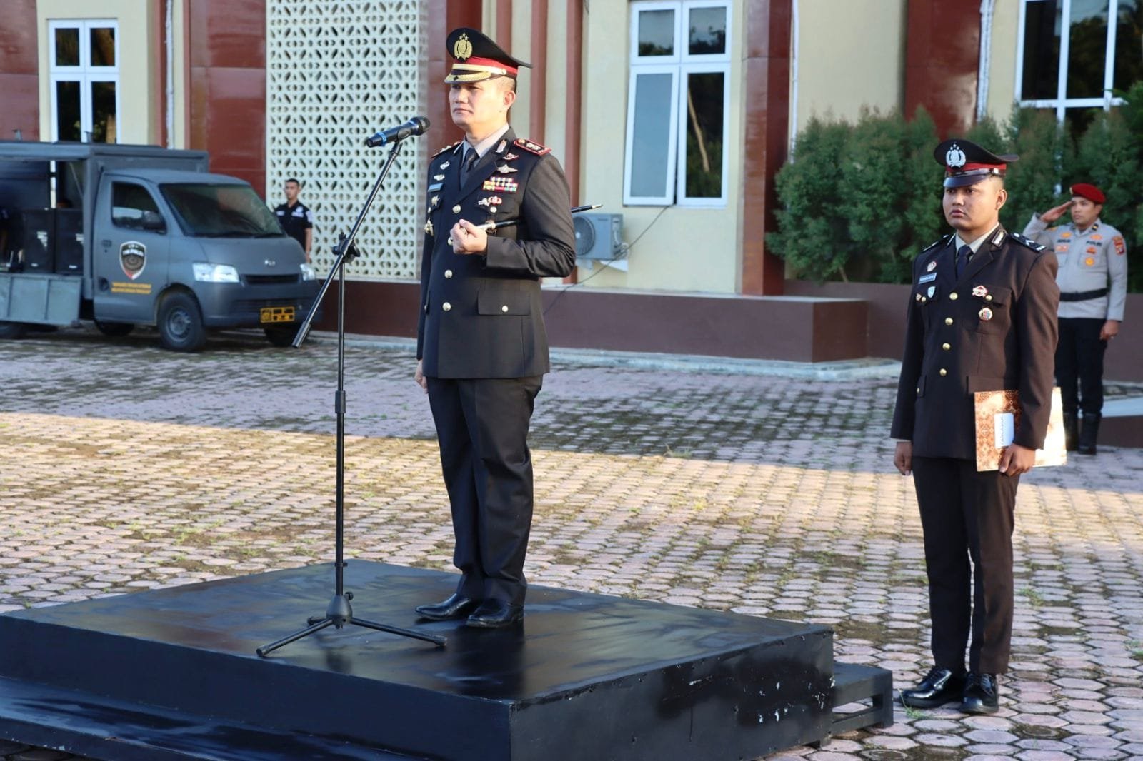 Upacara ini turut dihadiri oleh Wakapolres Pidie Jaya, Kompol Muara Uli Saut Hamonangan, S.E., M.M., para pejabat utama Polres, Kapolsek jajaran, serta seluruh personel Polres dan Polsek Pidie Jaya.