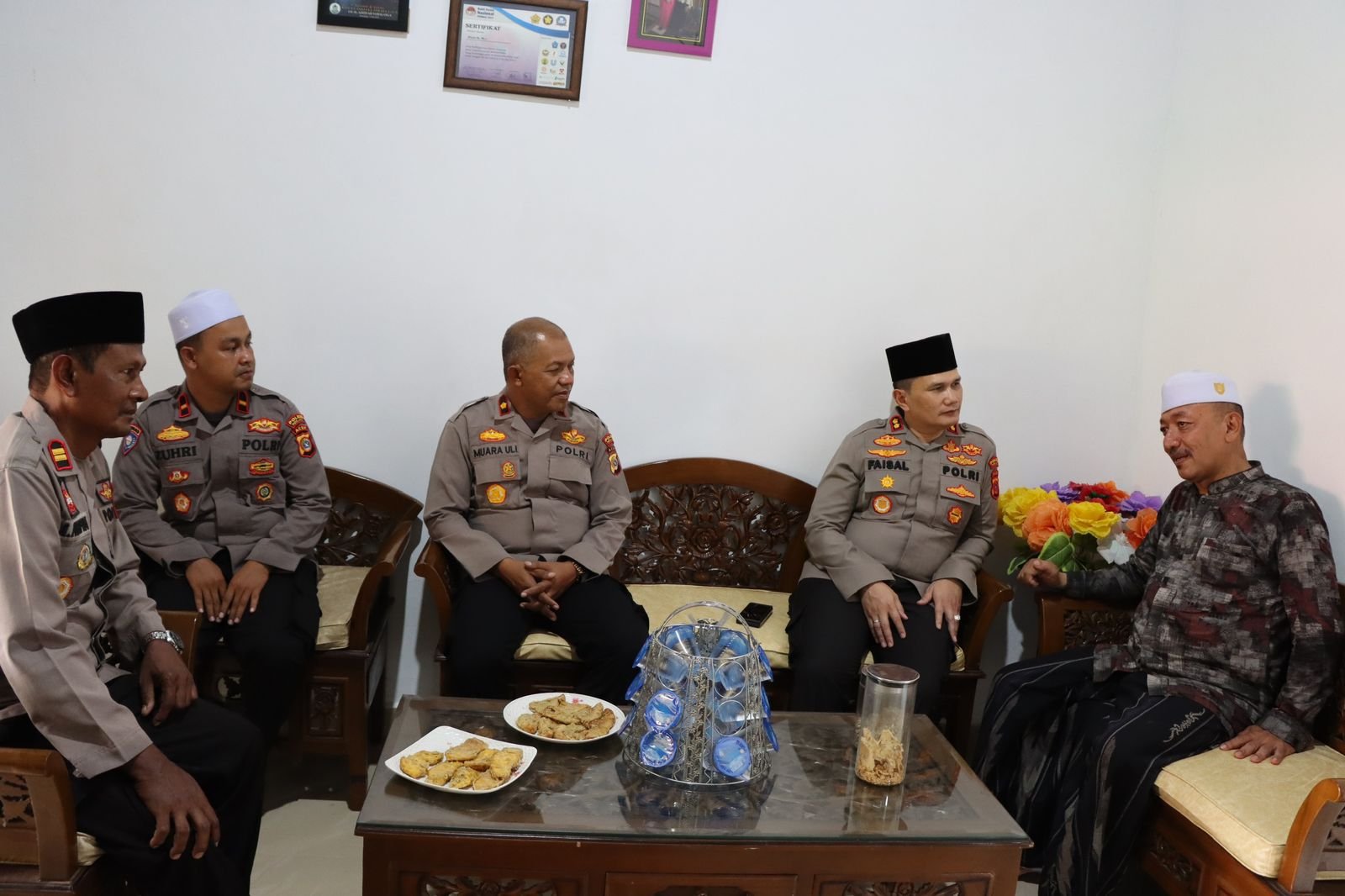 Pidie Jaya – Kapolres Pidie Jaya, AKBP Ahmad Faisal Pasaribu, S.H., S.I.K., M.H., bersama jajarannya, melakukan silaturrahmi dengan Pimpinan Dayah Al Muna, Waled H. Jafaruddin, di Gampong Keude Ulee Gle, Kecamatan Bandar Dua, Kabupaten Pidie Jaya pada Senin, 29 Juli 2024.