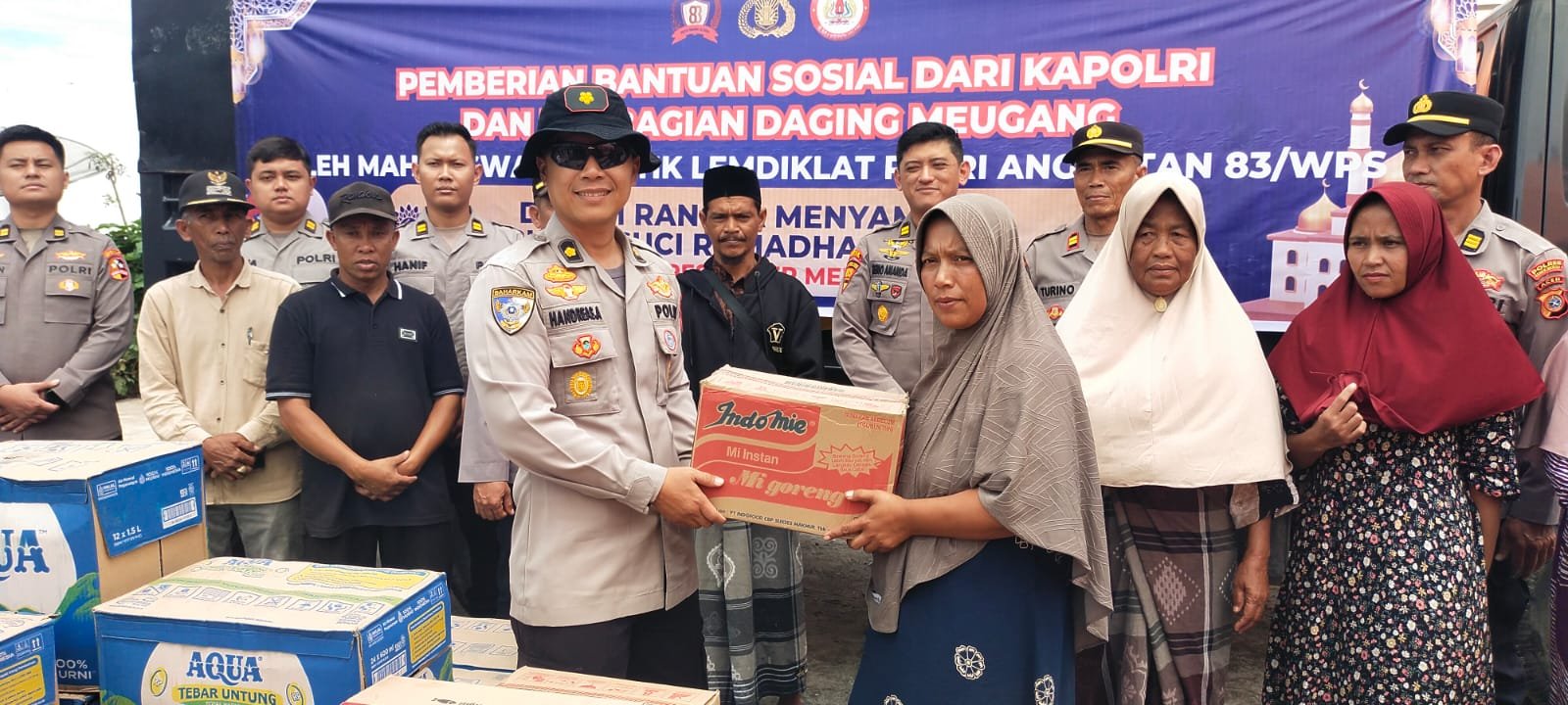 Bener MeriahSatupena.co.id:  Kepolisian Negara Republik Indonesia (Polri) melalui bantuan sosial dari Kapolri bersama mahasiswa Angkatan 83 menyalurkan bantuan sosial (bansos) serta daging meugang kepada korban banjir di Kecamatan Timang Gajah, Kabupaten Bener Meriah, Senin (18/2/2026).