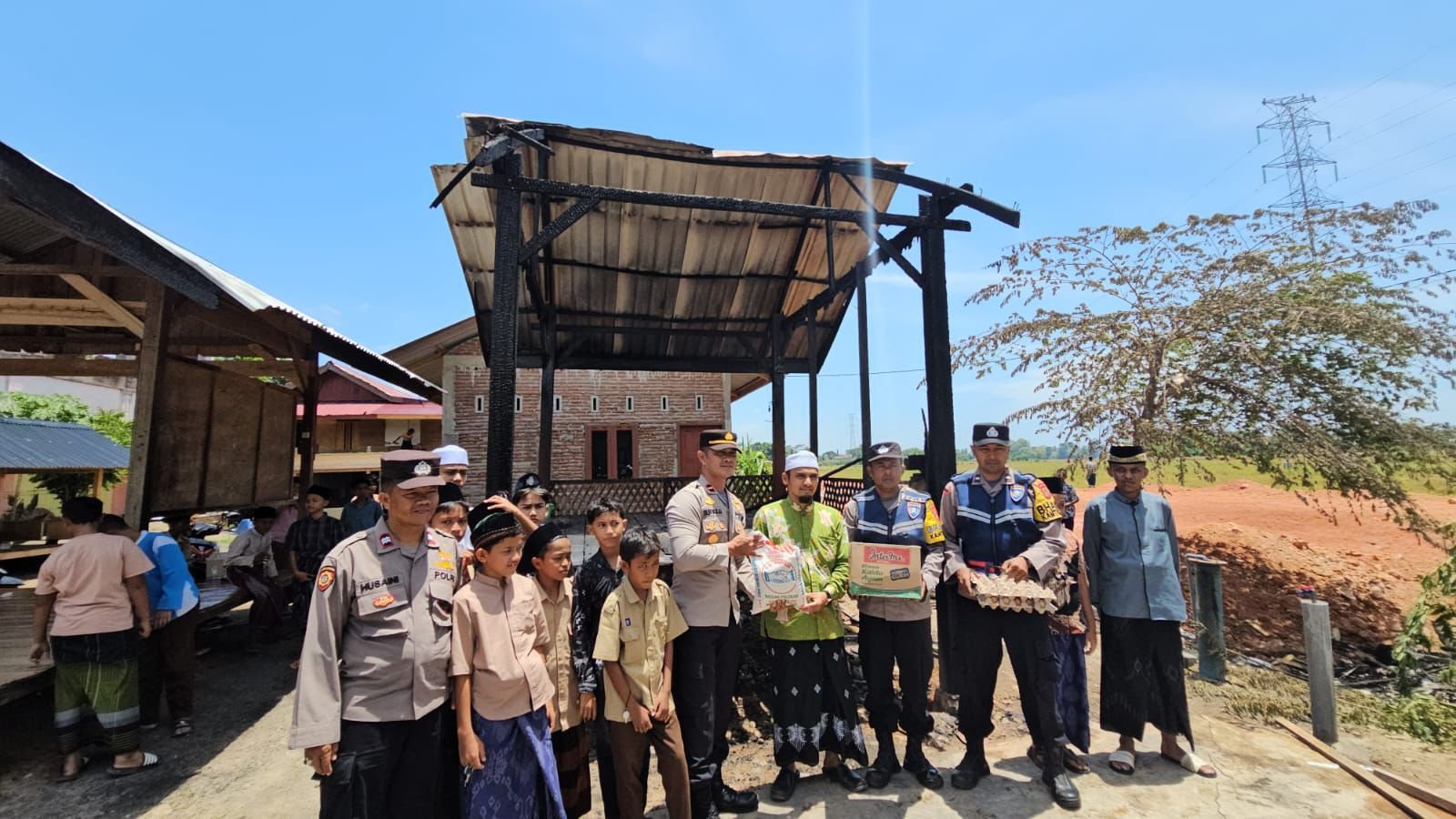 PIDIE JAYA — Kapolsek Bandar Dua, Ipda Taufikkurrahman, S.H., bersama personel Polsek Bandar Dua, mengunjungi Dayah Ahmadul Falah di Gampong Ulee Gle, Kecamatan Bandar Dua, Kabupaten Pidie Jaya, Rabu (13/8/2025). Kunjungan ini dilakukan sebagai bentuk kepedulian pasca kebakaran yang melanda dayah tersebut pada Minggu yang lalu.