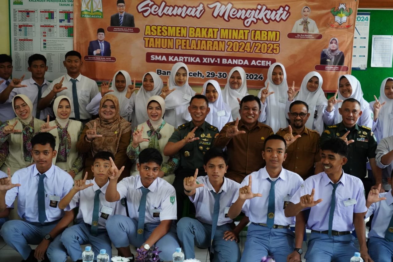 “Untuk itu, semua para siswa-siswi SMA Kartika XIV -I Banda Aceh harus mempersiapkan diri dari jauh-jauh hari, semangat dalam mengikuti Asesmen Bakat Minat (ABM), saya juga mengucapkan terima kasih kepada Kemendikbudristek RI atas layanan ABM yang telah diberikan.” Tutup Kasdam IM.