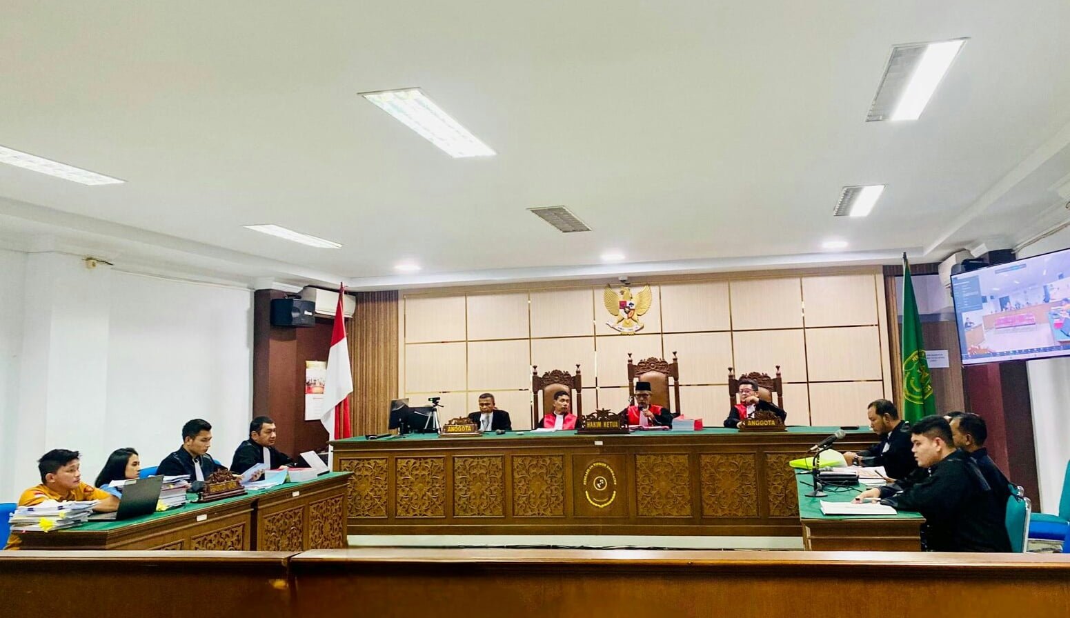 Sidang tersebut dipimpin oleh Ketua Majelis Hakim H. HAMZAH SULAIMAN, S.H dan H. HARMI JAYA, S.H., R. DEDI HARRYANTO, S.H.,M.Hum masing-masing selaku Hakim Anggota.